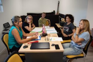 De izquierda a derecha: Elena Candela, Sofía Prieto, Puri Moya, Paco Sanguino, Imma Sancho, Elizabeta Domínguez, Manuel Ochoa y Sisi Álvarez