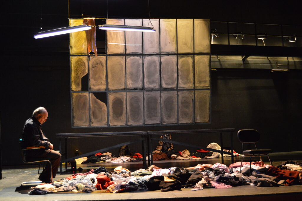 Ulisses in Berlin (2014), escrita por Francesc Sanguino. Dirigida por Pau Durá y Francesc Sanguino. Con Juli Mira, Cristina Fenollar, Toni Misó y Manuel Ochoa. Escenografía, diseño gráfico y fotografía de Cesc Guevara. Iluminación de Juan Gallego, vestuario de Puri Moya. Producción delegada de El El Club de la Serpiente. Producción Culturarts Generalitat Valenciana. (Foto de Cesc Guevara).